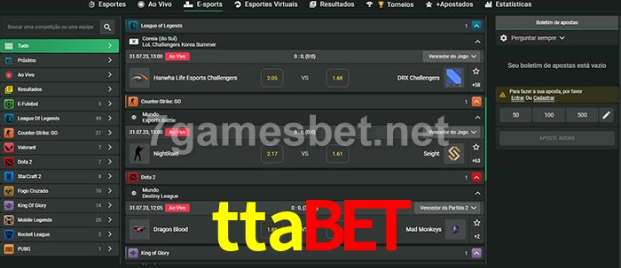 O ttabet oferece uma grande seleção de opções de apostas em e-sports com probabilidades competitivas